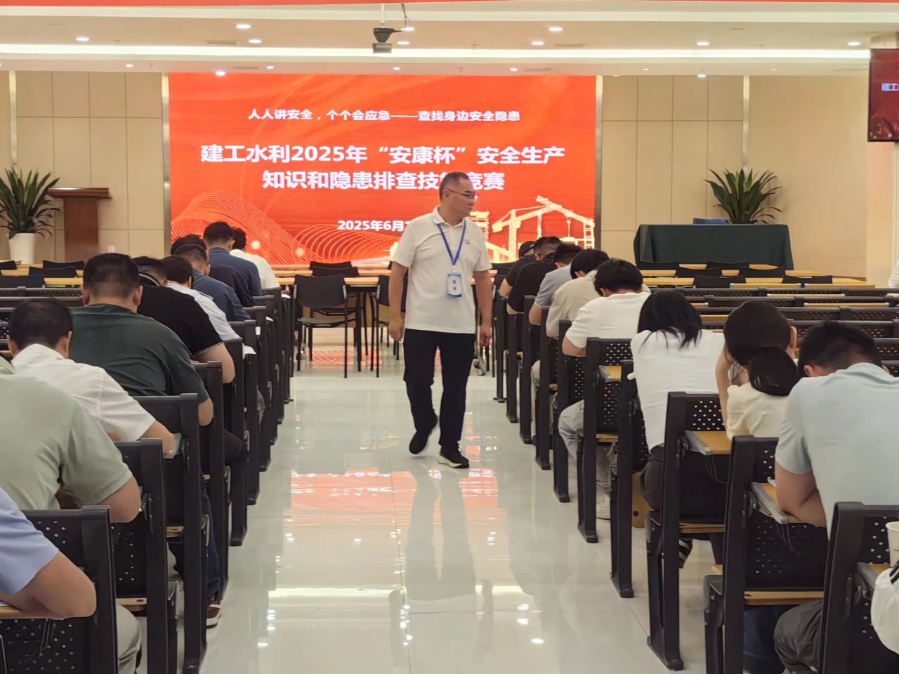 為深入開展第24個全國“安全生產(chǎn)月”活動,提升全員安全素養(yǎng),6月18日,建工水利公司安全環(huán)境監(jiān)察局、工會聯(lián)合舉辦2025年度“安康杯”安全生產(chǎn)知識和隱患排查技能競賽。建工水利公司黨委副書記、副總經(jīng)理王勝利出席活動并致辭,黨委委員、副總經(jīng)理王志強出席活動。