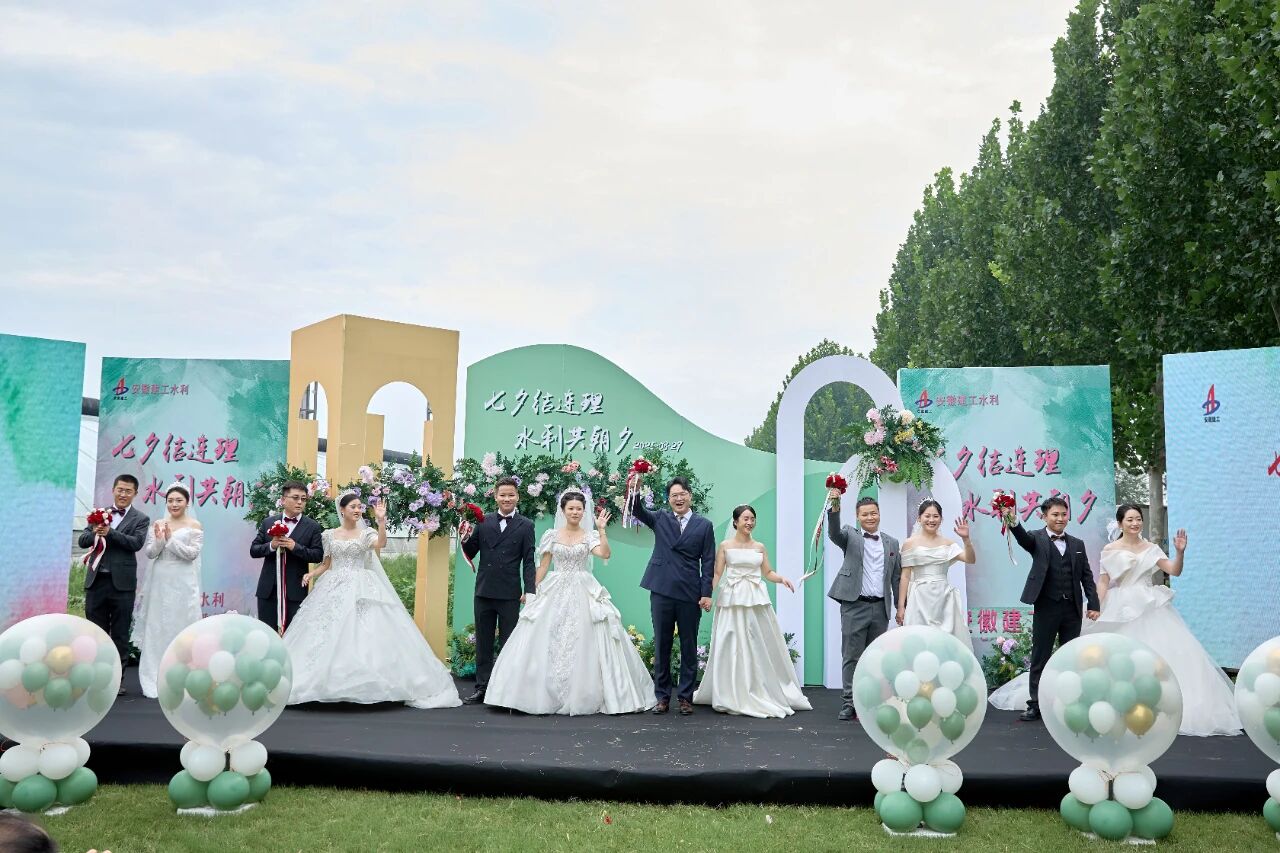 王勝利在證婚詞中深情寄語,表示這場集體婚禮既是公司為奮斗者量身定制的“幸福履約書” ,更是企業(yè)與職工共享發(fā)展成果的生動體現(xiàn)。希望新人們在未來的日子里永沐愛河、幸福美滿,如我們鑄就的大壩般堅不可摧,如我們疏通的江河般包容通達,如清澈的活水般永葆生機,既成為彼此溫暖的依靠、也成為對方事業(yè)上最堅定的支持者,不僅建設好小家、更要共同為我們這個“大家”——安徽建工水利的高質(zhì)量發(fā)展貢獻青春與智慧。