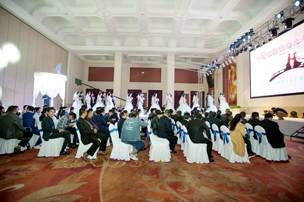 10點(diǎn)10分,一曲精妙絕倫的舞蹈《因?yàn)閻矍椤防_了集體婚禮的帷幕。率先出場的是十二位帥氣的新郎,他們以一段酷炫的舞蹈表達(dá)了心中難以抑制的激動,將現(xiàn)場氣氛推向高潮。伴著優(yōu)美的樂曲,十二位美麗的新娘在眾人的注視下緩緩步入會場,來到新郎身邊。在浪漫的婚禮進(jìn)行曲中新人們雙雙進(jìn)入禮堂,在現(xiàn)場觀眾的見證下彼此交換信物。隨后,美麗的新娘們將手中的捧花拋給在場的單身男女們。