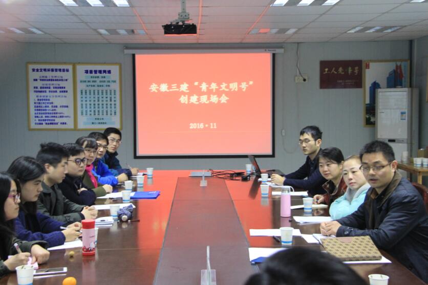 11月18日,安徽三建公司團(tuán)委在所屬五分公司力高·君御世家二期項(xiàng)目召開公司2016年度“青年文明號”創(chuàng)建經(jīng)驗(yàn)現(xiàn)場交流會。該司所屬合肥地區(qū)及部分外地公司團(tuán)支部負(fù)責(zé)人及2016年度創(chuàng)建集體青年代表參加會議。