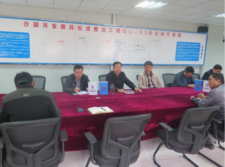 在沙潁河QL-03標項目部,李振標一行在項目負責人的陪同下察看了引橋附屬、主橋懸澆的施工現(xiàn)場,重點檢查了現(xiàn)場的安全文明施工、臨時用電、臨邊防護,隨后在項目部會議室召開會議。