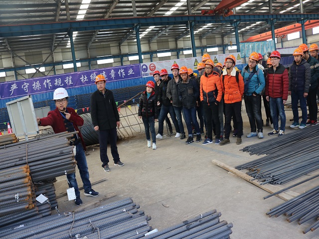 來訪師生在會議室聽取了項目副經(jīng)理徐海東對項目總體概況、文明施工、標準化建設等項目管理中經(jīng)驗及亮點的介紹后,參觀了鋼筋加工場、實驗室、預制場、料場以及官埠河大橋樁基和土方施工現(xiàn)場,全面了解了工程特點、施工進展情況,徐經(jīng)理對同學們提出的問題一一做了解答,使同學們更深入地了解了施工工法及施工安全質量控制要點等。