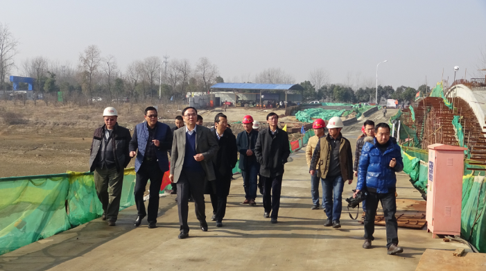 2016年12月31日,六安市市長畢小彬、副市長付新安在六安市重點局局長王勇、副局長周培勇等領(lǐng)導(dǎo)的陪同下,蒞臨安徽路港六安市文華路橋項目部檢查指導(dǎo)工作。
