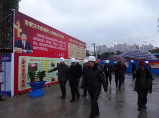 驗(yàn)收組一行深入施工現(xiàn)場,詳細(xì)查看了現(xiàn)場文明施工,定型化圍欄安全防護(hù),臨時(shí)用電,外腳手架及模板支撐等情況。步秘書長對(duì)在現(xiàn)場設(shè)置的項(xiàng)目微信公眾號(hào)進(jìn)行了二維碼掃碼并關(guān)注。在隨后召開的反饋會(huì)上,步向義肯定了項(xiàng)目在塔吊上安裝噴淋系統(tǒng)的做法,LED節(jié)能燈帶應(yīng)用、信息化技術(shù)及“互聯(lián)網(wǎng)+”等創(chuàng)新管理方法。同時(shí)稱贊安徽三建的安全管理工作已走在了全省前列,要求項(xiàng)目進(jìn)一步完善安全設(shè)施,消除安全管理漏洞,扎實(shí)做好安全基礎(chǔ)工作,使項(xiàng)目成為蕪湖市安全標(biāo)準(zhǔn)化示范工程的標(biāo)桿項(xiàng)目。最后,專家組一致同意該項(xiàng)目一次性通過“安徽省建筑安全生產(chǎn)標(biāo)準(zhǔn)化示范小區(qū)”驗(yàn)收。