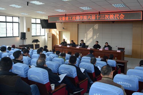 2017年1月14日下午,安徽建工技師學(xué)院六屆十三次教代會在學(xué)院教學(xué)樓錄播室召開,學(xué)院黨政領(lǐng)導(dǎo)、教職工代表和列席代表共46人參加會議。會議由紀(jì)委書記、工會主席吳良照同志主持。