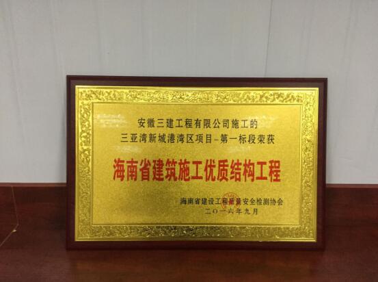新春將至,喜報頻傳。近日,安徽三建一分公司承建的海南魯能三亞灣新城港灣區(qū)項目第一標段被海南省建設工程質(zhì)量安全檢測協(xié)會授予“2016年度海南省建筑施工優(yōu)質(zhì)結構工程”。