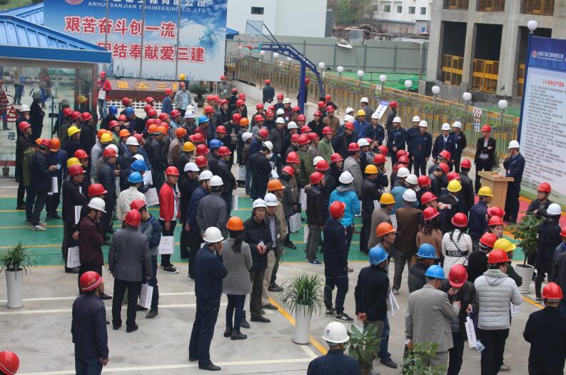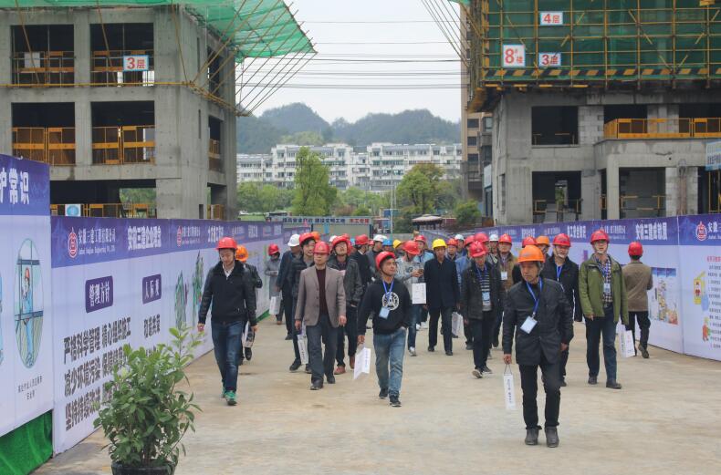 為進(jìn)一步推進(jìn)黃山市建設(shè)工程施工安全生產(chǎn)和文明施工標(biāo)準(zhǔn)化工地的創(chuàng)建以及宣傳創(chuàng)建經(jīng)驗(yàn)和標(biāo)準(zhǔn)化做法,4月11日,黃山建筑管理處組織黃山市二級(jí)以上施工總承包和監(jiān)理企業(yè)主要負(fù)責(zé)人及分管經(jīng)理、安全科長(zhǎng),架業(yè)公司負(fù)責(zé)人,中心城區(qū)在建項(xiàng)目的負(fù)責(zé)人及項(xiàng)目總監(jiān)等近三百人的觀摩團(tuán)蒞臨安徽三建二分公司承建的安徽三建栢悅?cè)A庭項(xiàng)目進(jìn)行現(xiàn)場(chǎng)實(shí)地觀摩,這也是今年以來黃山市建筑管理處組織的最大一次觀摩交流活動(dòng)。
