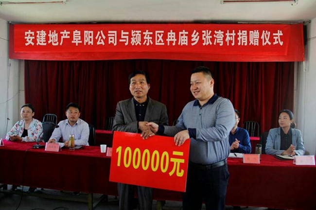 安建地產(chǎn)阜陽(yáng)公司向張灣村扶貧捐贈(zèng)十萬(wàn)元