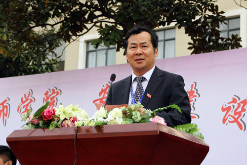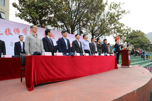 學(xué)院黨委書(shū)記、院長(zhǎng)張衛(wèi)東在開(kāi)幕式上致詞。首先他代表學(xué)院向出席運(yùn)動(dòng)會(huì)開(kāi)幕式的各級(jí)領(lǐng)導(dǎo)表示熱烈的歡迎!對(duì)本次運(yùn)動(dòng)會(huì)的舉行表示熱烈的祝賀!向刻苦訓(xùn)練、積極備戰(zhàn)的所有運(yùn)動(dòng)員致以崇高的敬意!向辛勤工作的所有裁判員和工作人員致以親切的問(wèn)候!他指出,舉辦運(yùn)動(dòng)會(huì),是學(xué)院全面推進(jìn)素質(zhì)教育,大力開(kāi)展陽(yáng)光體育活動(dòng),增強(qiáng)學(xué)院凝聚力,豐富學(xué)院生活的一項(xiàng)重要舉措。近年來(lái),在安徽建工集團(tuán)的正確領(lǐng)導(dǎo)下,在省市人社、教育部門的大力支持下,學(xué)院全面貫徹黨的教育方針,秉持“高端引領(lǐng)、特色立校、校企融合、重視素養(yǎng)、突出技能”的辦學(xué)理念,堅(jiān)持德育為先,在教育教學(xué)改革、招生就業(yè)、繼續(xù)教育、技能大賽等方面取得了較好成績(jī),為社會(huì)培養(yǎng)了大批全面發(fā)展的實(shí)用型高技能人才,為地區(qū)經(jīng)濟(jì)社會(huì)發(fā)展做出了積極貢獻(xiàn),贏得了廣泛的社會(huì)認(rèn)同,學(xué)院的美譽(yù)度、知名度和影響力日益擴(kuò)大。學(xué)生在近三年的國(guó)家級(jí)和省級(jí)技能大賽上屢創(chuàng)佳績(jī),獲得國(guó)家級(jí)銀獎(jiǎng)1個(gè),銅獎(jiǎng)5個(gè),獲得省級(jí)一等獎(jiǎng)10個(gè),二等獎(jiǎng)18個(gè),三等獎(jiǎng)9個(gè)。特別是在剛剛結(jié)束的國(guó)家級(jí)技能大賽選拔賽中,學(xué)院有四個(gè)項(xiàng)目、九名同學(xué)闖入了國(guó)賽,充分展示了國(guó)家改革與發(fā)展示范校、國(guó)家高技能人才培訓(xùn)基地的風(fēng)采和實(shí)力。他強(qiáng)調(diào),當(dāng)前,學(xué)院緊緊把握國(guó)家大力發(fā)展職業(yè)教育的契機(jī),全面貫徹落實(shí)人社部技工教育“十三五”規(guī)劃和安徽省建設(shè)“技工大省”的規(guī)劃,積極謀劃新校區(qū)建設(shè),著力打造國(guó)家高技能人才培訓(xùn)基地和世界技能大賽集訓(xùn)基地,推進(jìn)學(xué)院轉(zhuǎn)型升級(jí),狠抓“三風(fēng)”建設(shè),進(jìn)一步加強(qiáng)基礎(chǔ)管理鞏固年建設(shè),全面提升學(xué)院內(nèi)涵,通過(guò)增設(shè)無(wú)人機(jī)、高鐵服務(wù)等新專業(yè)以及開(kāi)展與韓國(guó)、德國(guó)等國(guó)外優(yōu)秀職業(yè)院校和知名企業(yè)加強(qiáng)國(guó)際合作辦學(xué)來(lái)提高辦學(xué)層次,增強(qiáng)辦學(xué)特色,從而提高教學(xué)質(zhì)量和辦學(xué)品質(zhì)。同時(shí),學(xué)院全面推進(jìn)教學(xué)改革,重點(diǎn)抓好實(shí)習(xí)實(shí)訓(xùn)和一體化教學(xué)改革,大力推行德育教育、品行教育和技能教育,努力將同學(xué)們培養(yǎng)成個(gè)性鮮明、技術(shù)過(guò)硬、優(yōu)勢(shì)特長(zhǎng)凸顯的高素質(zhì)高技能型人才。張?jiān)洪L(zhǎng)最后希望全體參賽運(yùn)動(dòng)員賽出風(fēng)格、賽出水平, 賽出友誼, 把本次運(yùn)動(dòng)會(huì)辦成一次文明、向上、精彩、成功的體育盛會(huì)!
