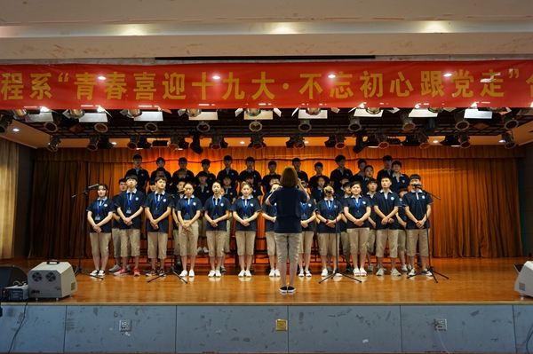 比賽中,每支隊(duì)伍的合唱曲目包括一首指定歌曲《中國(guó)共青團(tuán)團(tuán)歌》和一首自選歌曲。伴隨著富有節(jié)奏的指揮,雄壯的《光榮啊,中國(guó)共青團(tuán)》縈繞在會(huì)場(chǎng)中,同學(xué)們用鏗鏘有力的聲音表達(dá)了對(duì)黨的崇高信仰以及作為共青團(tuán)員的自豪與擔(dān)當(dāng);在自選曲目環(huán)節(jié),各支隊(duì)伍紛紛唱起準(zhǔn)備已久的紅歌,《彈起我心愛的土琵琶》,引領(lǐng)我們重溫了那段崢嶸歲月,嘹亮的歌聲喚起了我們慷慨報(bào)國(guó)的凌云壯志,氣勢(shì)磅礴的合唱博得了現(xiàn)場(chǎng)陣陣熱烈的掌聲;《人民武警英雄的兵》唱出了人民子弟兵熱愛祖國(guó)、熱愛人民、熱愛和平的一腔赤誠(chéng)熱血;《茉莉花》節(jié)奏輕悠舒緩,抒發(fā)了青年學(xué)生對(duì)青蔥歲月的無限遐想......比賽期間,臺(tái)上的同學(xué)們熱情洋溢,聲音洪亮;指揮員手勢(shì)準(zhǔn)確,富有激情;臺(tái)下觀眾掌聲不斷,一次次將比賽推向高潮。隨風(fēng)飄揚(yáng)的是歷史的歌聲,是那些祖祖輩輩留下的紅歌,它象征的是希望!無論是哪一個(gè)系部的演出,都令在場(chǎng)的觀眾印象深刻!