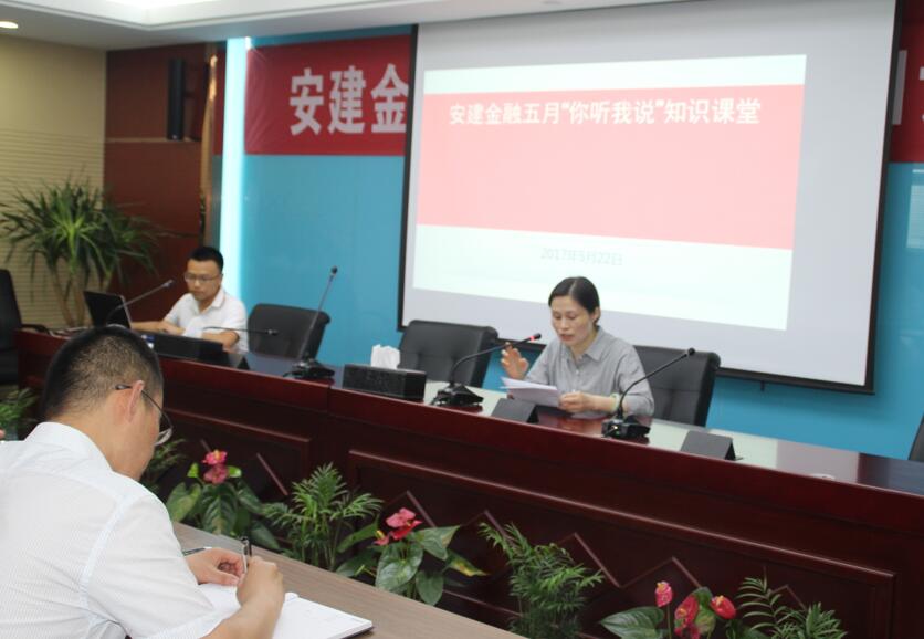為進一步提升公司員工綜合素質,打造學習型企業(yè),安建金融首堂“你聽我說”知識課堂于5月22日下午首次開講。此次知識課堂由公司黨群工作部舉辦,安建金融全體員工參加學習。