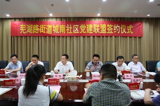 5月26日,合肥蕪湖路街道城南社區(qū)黨建聯(lián)盟正式成立。安徽三建、省建行、省糧食局、省直公積金管理中心、安建建材及安醫(yī)大四附院和市政設(shè)施信息中心等7家單位與城南社區(qū)簽訂“城南社區(qū)黨建聯(lián)盟協(xié)議書(shū)”,以共同促進(jìn)黨建工作開(kāi)展。