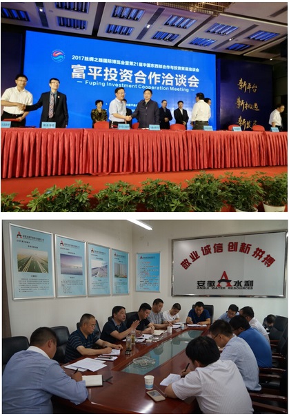 2017年6月5日上午,安徽水利黨委書記、總經(jīng)理張曉林出席《2017絲綢之路國際博覽會暨第21屆中國東西部合作與投資貿(mào)易洽談會》--富平投資合作洽談會,代表安徽水利開發(fā)股份有限公司與陜西省富平縣人民政府簽訂了相關(guān)投資合作框架協(xié)議。