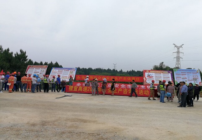 貍宣高速路面一標(biāo)、二標(biāo)聯(lián)合開展安全生產(chǎn)月咨詢?nèi)栈顒?dòng),邀請(qǐng)業(yè)主、監(jiān)理等單位參加,對(duì)本年度安全生產(chǎn)月展板講解及對(duì)周邊村民發(fā)放宣傳資料并開展安全知識(shí)咨詢活動(dòng)。
