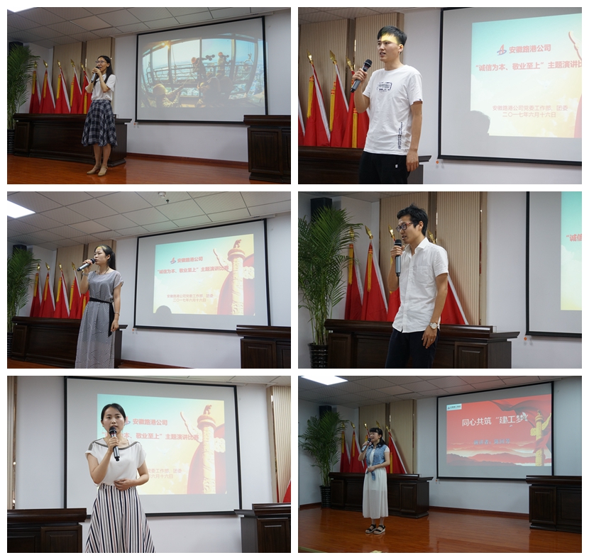 6月16日下午,安徽路港公司在安建大廈22樓會(huì)議室舉辦“誠(chéng)信為本、敬業(yè)至上”主題征文演講比賽,公司紀(jì)委書(shū)記、工會(huì)主席干戈,所屬各單位黨工團(tuán)負(fù)責(zé)人、公司機(jī)關(guān)職工和各參賽選手共計(jì)60余人參加。