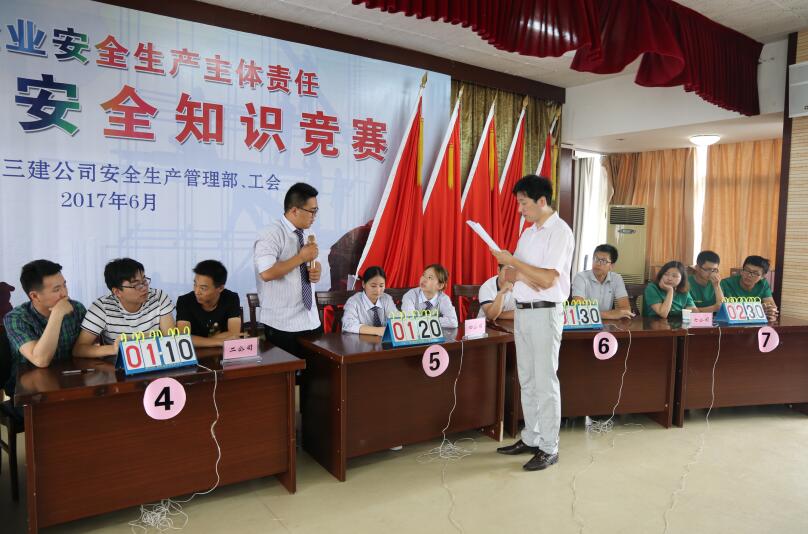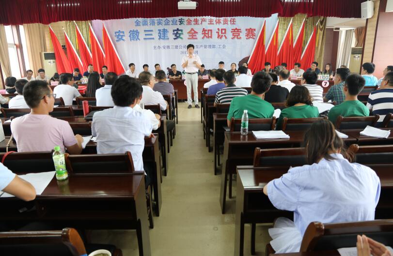為認(rèn)真貫徹公司“安全生產(chǎn)月”活動精神,豐富員工安全生產(chǎn)知識,強化員工安全生產(chǎn)意識,營造和諧、平安、美好的企業(yè)安全文化氛圍。6月25日下午,安徽三建公司安全生產(chǎn)管理部和工會聯(lián)合舉辦了主題為“全面落實安全生產(chǎn)主體責(zé)任”的安全知識競賽。