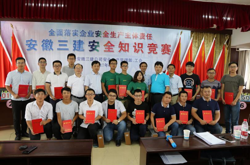 此次主題為“全面落實企業(yè)安全生產(chǎn)主體責(zé)任”的安全知識競賽,作為該司今年“安全生產(chǎn)月”活動的重要內(nèi)容,受到了公司上下的廣泛關(guān)注,建工集團(tuán)工會副主席吳曉伍、建工集團(tuán)安全監(jiān)察局副主任葛輝等親臨知識競賽現(xiàn)場,并擔(dān)綱仲裁。安徽三建公司黨委委員、副總經(jīng)理何洪春、紀(jì)委書記、工會主席李家保出席安全知識競賽,并為獲獎選手頒獎。