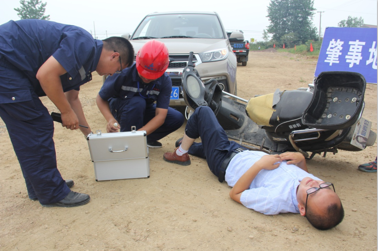 本次交通事故應(yīng)急演練是模擬在052縣道與新建段交叉路口,項(xiàng)目部車輛與當(dāng)?shù)厝藛T所騎行的電瓶車發(fā)展碰撞,導(dǎo)致電瓶車駕駛員受傷骨折,通過(guò)該項(xiàng)目部起動(dòng)應(yīng)急預(yù)案展開(kāi)救援,各救援小組在項(xiàng)目部、工管部和公司以及與110、120的緊密聯(lián)合,成功搶險(xiǎn)。此外,還開(kāi)展了安徽建工安全誓詞宣誓活動(dòng)和安全消防應(yīng)急演練,旨在提高項(xiàng)目職工安全生產(chǎn)意識(shí)和火災(zāi)應(yīng)急救援能力?! ?SPAN lang=EN-US>