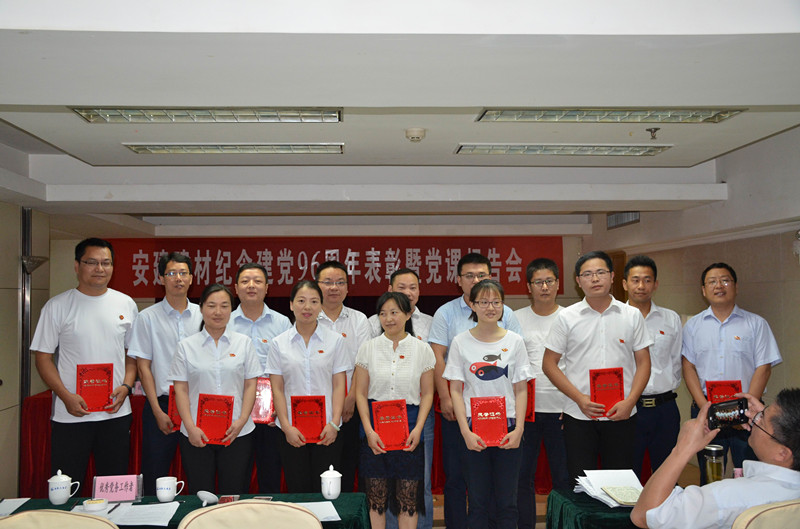 2017年6月29日上午,安建建材隆重舉行紀(jì)念建黨96周年表彰暨黨課報告會。公司領(lǐng)導(dǎo)班子成員,各子(分)公司領(lǐng)導(dǎo)班子成員,機關(guān)及營銷分公司全體黨員,受表彰的先進(jìn)黨支部負(fù)責(zé)人、優(yōu)秀黨員和優(yōu)秀黨務(wù)工作者、2016年度組織發(fā)展的新黨員共70余人參加了會議。安建建材公司黨委副書記、紀(jì)委書記胡運春主持會議。