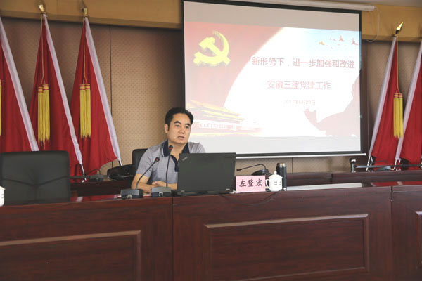 為進(jìn)一步推進(jìn)“兩學(xué)一做”學(xué)習(xí)教育常態(tài)化制度化,扎實推動基層黨組織標(biāo)準(zhǔn)化建設(shè),6月29日上午在建筑工業(yè)有限公司會議室,安徽三建公司黨委書記左登宏帶頭上黨課,為該司領(lǐng)導(dǎo)班子成員,外地分公司黨政負(fù)責(zé)人,合肥地區(qū)各單位黨員干部,公司機(jī)關(guān)中層副職以上黨員干部;項目黨支部負(fù)責(zé)人,工會、團(tuán)組織負(fù)責(zé)人、政工干事及受表彰人員、宣誓的預(yù)備黨員等230多人上了一堂主題為“新形勢下,進(jìn)一步加強和改進(jìn)安徽三建黨建工作”的專題黨課。黨課由公司黨委副書記黃麗春主持。