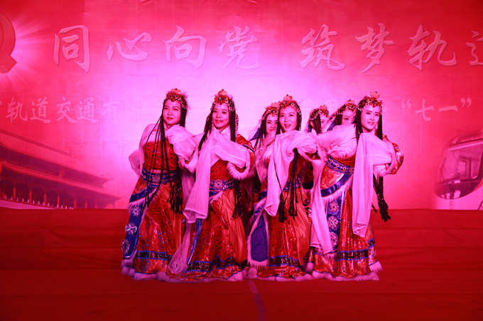 6月下旬,安徽交航合肥軌道交通4號(hào)線TJ03項(xiàng)目部接到演出邀請(qǐng)后,公司領(lǐng)導(dǎo)十分重視,公司工會(huì)積極組織職工排練節(jié)目。經(jīng)過(guò)5天的緊張排練,該節(jié)目順利通過(guò)合肥軌道公司的初審、二審,從38個(gè)節(jié)目中脫穎而出,成為15個(gè)參演節(jié)目中一朵靚麗的小花,在合肥5條軌道交通線四五十家施工企業(yè)中只有安徽交航、安徽路橋、中鐵四局等9家單位參演。歡快的舞曲、鮮明的節(jié)奏及歌頌的詞句展現(xiàn)出在解放西藏“一面進(jìn)軍、一面修路”的戰(zhàn)斗中,在實(shí)現(xiàn)民主改革的日子里,在邊疆自衛(wèi)反擊的戰(zhàn)場(chǎng)上,解放軍和藏族人民結(jié)下的魚水情意。演員們用飽滿的情緒和奔放的舞姿將演出推向高潮。