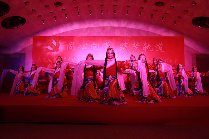 金色的錘鐮,熠熠生輝,放射光芒。“是誰(shuí)幫咱們修公路,是誰(shuí)幫咱們架橋梁,是那親人解放軍,是那親人共產(chǎn)黨?!?月1日,在偉大的中國(guó)共產(chǎn)黨成立96周年之際,安徽交航公司精心選送的藏族舞蹈《洗衣歌》在合肥市軌道交通有限公司紀(jì)念建黨96周年暨“七一”表彰大會(huì)文藝匯演中順利演出。