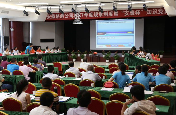 7月5日下午,安徽路港公司2017年度規(guī)章制度暨“安康杯”知識(shí)競(jìng)賽在安建大廈3樓舉行,共有來(lái)自公司機(jī)關(guān)、司屬各單位的24支參賽隊(duì)伍、72名職工參加比賽。集團(tuán)工會(huì)副主席吳曉伍、調(diào)研員胡愛(ài)紅應(yīng)邀出席并做點(diǎn)評(píng),安徽路港公司董事長(zhǎng)、總經(jīng)理李振標(biāo),紀(jì)委書(shū)記、工會(huì)主席干戈觀看了本次競(jìng)賽。