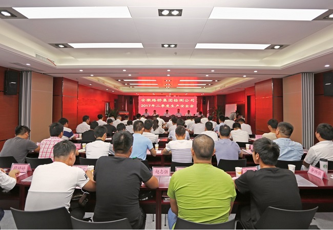 會上,各項目試驗室、機關各部門對二季度工作情況、人員安全教育及交底情況、存在的問題及解決思路、下步管控的重點及對公司的合理化建議等情況進行了匯報。會議通報了檢測公司2017年上半年員工考核結果,學習了盛明宏董事長在安徽路橋集團2017年第三季度生產調度會暨安委會擴大會上的講話。會上,檢測公司董事長卞寶林與項目工地試驗室簽訂了《目標責任書》。下午,與會人員參加了工地試驗室管理培訓課程和隨堂考試。