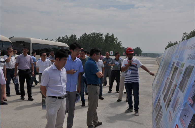 項(xiàng)目總工向觀(guān)摩團(tuán)簡(jiǎn)要介紹了工程概況、施工組織、橋梁工程施工精細(xì)化控制措施等。聽(tīng)完介紹后,觀(guān)摩團(tuán)隊(duì)伍駐足觀(guān)看了宣傳展板,紛紛舉起相機(jī)、手機(jī)記錄項(xiàng)目建設(shè)的先進(jìn)做法,并對(duì)滁定01標(biāo)路基橋梁質(zhì)量可控、安全管理有保障、新技術(shù)、新工藝、新材料應(yīng)用,安全質(zhì)量管理程序化、施工現(xiàn)場(chǎng)安全防護(hù)標(biāo)準(zhǔn)給予高度評(píng)價(jià)。