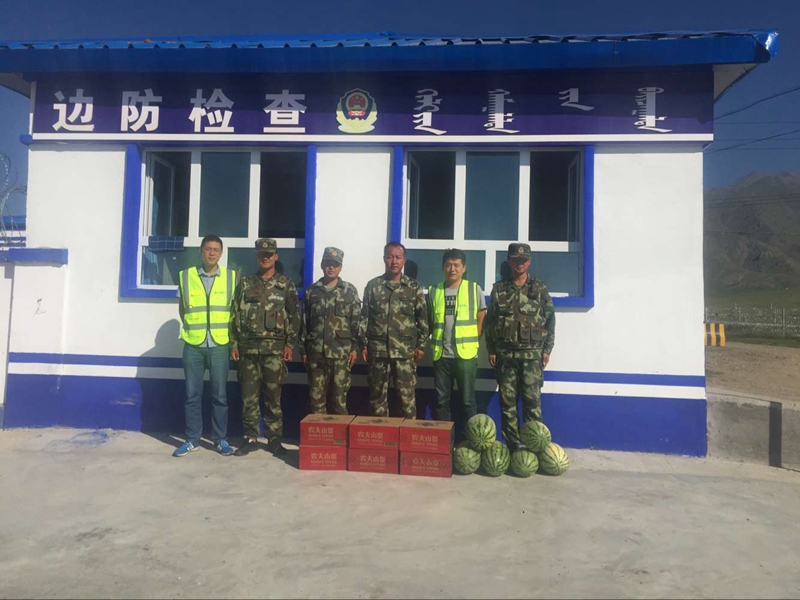 為慶祝中國人民解放軍建軍90周年,增進軍民深厚情誼,7月30日下午,帶著對人民子弟兵的深情厚誼和崇高敬意,安徽路港新疆博州國防路項目部給博樂市邊防大隊、溫泉縣邊防大隊及沿線各個邊境檢查站的邊防官兵送上了安徽建工職工對人民子弟兵濃濃的節(jié)日祝福,并向官兵們贈送了羊肉以及礦泉水、西瓜等慰問品。邊防官兵對項目部的慰問表示由衷感謝,表示將一如既往支持地方各項建設,為社會穩(wěn)定和企業(yè)開展正常的施工生產(chǎn)保駕護航。