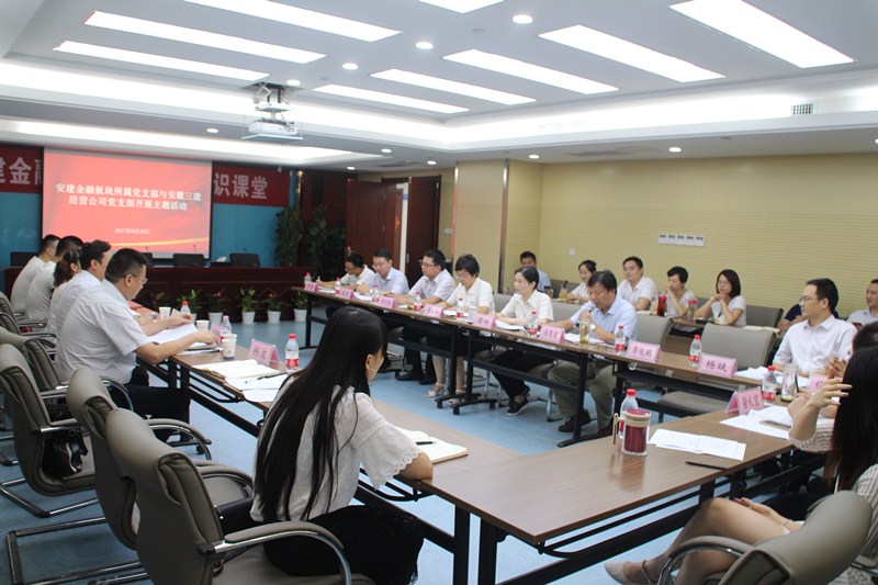 8月10日,安建金融板塊所屬黨支部與安徽三建機(jī)關(guān)黨總支第一支部聯(lián)合開展以業(yè)務(wù)交流為主題的黨員活動。安建財(cái)務(wù)公司黨總支書記、副總經(jīng)理潘琳,安徽三建公司黨委委員、副總經(jīng)理劉順利以及安建金融板塊、安徽三建經(jīng)營公司的黨員骨干參加了此次活動。此次活動由安建財(cái)務(wù)公司總經(jīng)理助理陳茂炎主持。