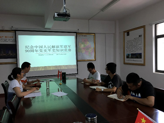 為慶祝建軍90周年,進(jìn)一步推動(dòng)“兩學(xué)一做”學(xué)習(xí)教育,加強(qiáng)黨員黨性修養(yǎng),喚起黨員責(zé)任意識(shí),安建地產(chǎn)組織開展了“軍魂激蕩 旗幟飛揚(yáng)——慶祝建軍90周年”主題黨日活動(dòng)。
