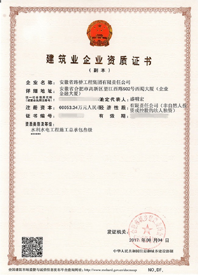 8月4日,經(jīng)合肥市城鄉(xiāng)建設(shè)委員會核準(zhǔn),公司成功取得水利水電三級資質(zhì)證書。該資質(zhì)的取得,為安徽路橋集團進軍水利水電市場邁出了堅實的第一步,拓寬了公司的發(fā)展空間。
