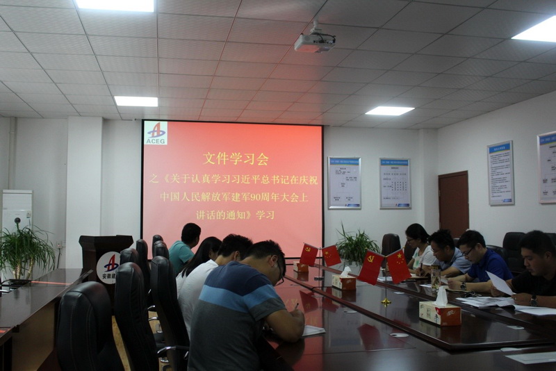 8月17日,舒城安建投資有限公司召開會(huì)議,學(xué)習(xí)傳達(dá)了習(xí)近平總書記在慶祝中國人民解放軍建軍90周年大會(huì)上的講話及省委書記李錦斌在省委常委會(huì)會(huì)議暨省委議軍會(huì)上的講話精神。會(huì)議由公司董事長(zhǎng)、總經(jīng)理?xiàng)钴娭鞒郑救w員工參加學(xué)習(xí)。