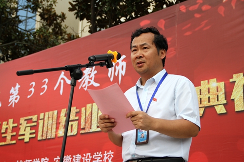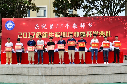 學(xué)院黨委書(shū)記、院長(zhǎng)張衛(wèi)東作重要講話,他代表學(xué)院全體師生向出席典禮的各位領(lǐng)導(dǎo)表示熱烈的歡迎!向大力支持和幫助我院發(fā)展的各級(jí)領(lǐng)導(dǎo)表示衷心的感謝!向軍訓(xùn)教官表示崇高的敬意!向辛勤耕耘在教學(xué)、管理、服務(wù)第一線的廣大教職員工致以節(jié)日的祝賀和誠(chéng)摯的問(wèn)候!向?yàn)閷W(xué)院建設(shè)和發(fā)展付出辛勤勞動(dòng)的離退休老同志們致以崇高的敬意!向受到表彰的先進(jìn)集體和先進(jìn)個(gè)人表示熱烈的祝賀!他指出,2017年上半年,學(xué)院圍繞改革和轉(zhuǎn)型這一主線,全面推動(dòng)教學(xué)改革和提高學(xué)生職業(yè)素養(yǎng),堅(jiān)持德育為先,學(xué)院各項(xiàng)事業(yè)呈現(xiàn)出良好的發(fā)展態(tài)勢(shì),在招生就業(yè)、學(xué)生管理、德育工作、繼教培訓(xùn)、技能大賽等方面成效顯著、亮點(diǎn)紛呈。全年招生3000余人,招生人數(shù)創(chuàng)歷史新高;繼教培訓(xùn)工作上半年目標(biāo)任務(wù)已超額完成,預(yù)計(jì)全年各類(lèi)培訓(xùn)總量有望突破3萬(wàn)人次;學(xué)生在技能大賽上取得了歷史性的最好成績(jī),獲得國(guó)家級(jí)銀牌1枚,銅牌3枚;獲得省級(jí)金牌4枚,銀牌8枚,銅牌1枚。下半年,學(xué)院還將堅(jiān)持“高端引領(lǐng),特色立?!?,創(chuàng)造條件全力推進(jìn)新校區(qū)建設(shè),千方百計(jì)改善實(shí)習(xí)實(shí)訓(xùn)條件,改善學(xué)生的學(xué)習(xí)生活條件,大力推動(dòng)教學(xué)改革,全面提高教育教學(xué)質(zhì)量。他強(qiáng)調(diào),教育事業(yè)是人類(lèi)崇高的事業(yè),教師是無(wú)上光榮的職業(yè),培養(yǎng)高素質(zhì)高技能人才,教師是關(guān)鍵。學(xué)院將進(jìn)一步把尊師重教落到實(shí)處,并花大力氣打造雙師型的高水平師資隊(duì)伍。他希望全體教職員工樹(shù)立“品牌意識(shí)”“質(zhì)量意識(shí)”“責(zé)任意識(shí)”,站在學(xué)院發(fā)展的高度,高標(biāo)準(zhǔn)、嚴(yán)要求,恪盡職守、嚴(yán)于律己、愛(ài)校如家、德藝雙修,創(chuàng)新教學(xué)方法,全面推行理實(shí)一體化,牢固樹(shù)立三個(gè)一切的服務(wù)觀念。維護(hù)學(xué)校聲譽(yù),為校增光添彩。同時(shí),張?jiān)洪L(zhǎng)還語(yǔ)重心長(zhǎng)地對(duì)全體新同學(xué)提出三點(diǎn)殷切希望。一是認(rèn)真學(xué)習(xí),苦練技能。二是嚴(yán)格要求,踏實(shí)做人。三是尊敬師長(zhǎng),團(tuán)結(jié)同學(xué)。他要求全體同學(xué)不僅要有高超的專(zhuān)業(yè)技能,更要有高尚的人品和崇高的道德水準(zhǔn),弘揚(yáng)工匠精神,真正使自己成為新時(shí)代優(yōu)秀的工匠。