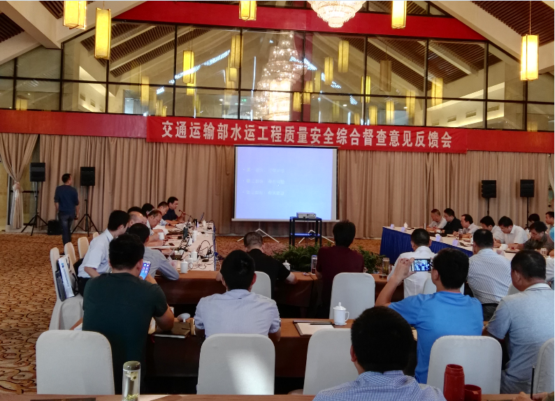 圖為交通運輸部水運工程質(zhì)量安全綜合督察意見反饋會現(xiàn)場