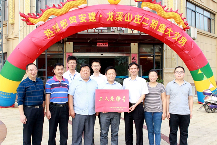 吳主席一行實(shí)地查看了創(chuàng)建情況,認(rèn)真聽取了項(xiàng)目負(fù)責(zé)人關(guān)于“工人先鋒號(hào)”創(chuàng)建工作匯報(bào),對(duì)宿松公司以“一流工作、一流服務(wù)、一流業(yè)績(jī)、一流團(tuán)隊(duì)”為目標(biāo),從黨建、工程建設(shè)、銷售三個(gè)方面認(rèn)真部署創(chuàng)建工作,并取得日新月異的成績(jī)給予了高度評(píng)價(jià)。吳主席現(xiàn)場(chǎng)授予安建地產(chǎn)宿松公司2017年安徽建工集團(tuán)“工人先鋒號(hào)”榮譽(yù)獎(jiǎng)牌。