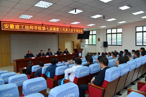 2017年10月13日下午,安徽建工技師學(xué)院第七屆教職工代表大會(huì)專題會(huì)議在教學(xué)樓錄播室召開,專題討論和表決新校區(qū)建設(shè)這一重大事項(xiàng),廣泛聽取并征求教職工代表對(duì)于建設(shè)新校區(qū)的意見和建議。學(xué)院領(lǐng)導(dǎo)班子出席大會(huì)。大會(huì)應(yīng)到教職工代表50人,實(shí)到49人。紀(jì)委書記、工會(huì)主席吳良照主持會(huì)議。