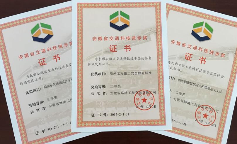 近日,由安徽路港公司完成的《波形鋼腹板預(yù)應(yīng)力砼箱梁施工技術(shù)》、《船閘工程施工安全檢查標(biāo)準(zhǔn)》榮獲安徽省交通科技進步獎二等獎,《船閘永久性鋼板樁導(dǎo)航墻施工技術(shù)》榮獲三等獎,同時鄭金輝同志被授予“安徽省公路學(xué)會優(yōu)秀工程師”榮譽稱號。