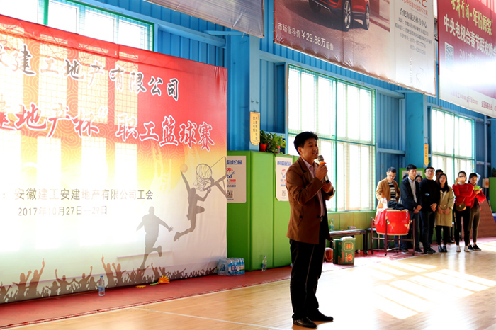 為增進(jìn)安建地產(chǎn)各單位之間的交流,激發(fā)職工奮勇拼搏的熱情,彰顯職工風(fēng)采, 向十九大獻(xiàn)禮,10月27日,“安建地產(chǎn)杯”第二屆職工籃球賽在合肥孫亮籃球公園成功舉辦。安徽建工集團(tuán)工會(huì)副主席吳曉伍,安建地產(chǎn)領(lǐng)導(dǎo)班子成員出席籃球賽。安建地產(chǎn)黨委副書(shū)記、總經(jīng)理?xiàng)畋笾麻_(kāi)幕詞,安徽建工集團(tuán)工會(huì)副主席吳曉伍為籃球賽開(kāi)球。