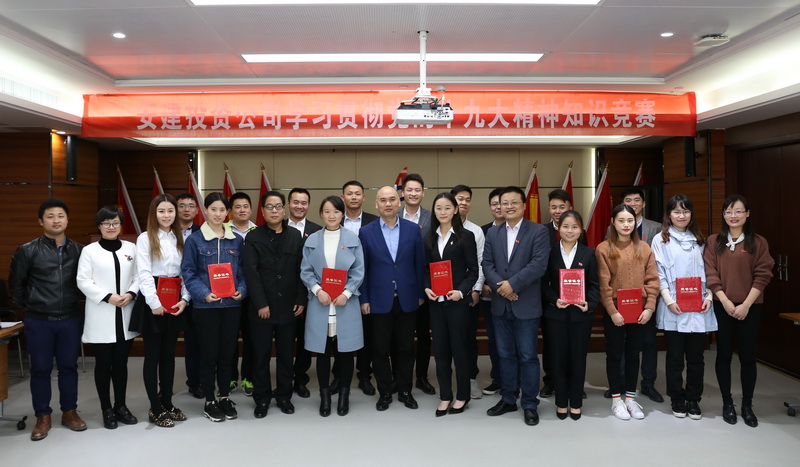 11月9日下午,安建投資公司學(xué)習(xí)貫徹黨的十九大精神知識(shí)競(jìng)賽成功舉辦。來(lái)自公司機(jī)關(guān)及所屬各項(xiàng)目公司15名隊(duì)員組成的5支代表隊(duì)匯聚一堂,展開(kāi)激烈角逐。公司總經(jīng)理、黨總支副書(shū)記朱忠明,黨總支書(shū)記、副總經(jīng)理余志剛,黨總支委員、紀(jì)檢委員、副總經(jīng)理朱友良出席比賽。