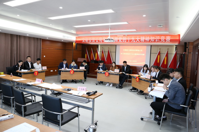競(jìng)賽現(xiàn)場(chǎng),公司黨總支委員、紀(jì)檢委員、副總經(jīng)理朱友良作開(kāi)賽致辭。他首先向參加比賽的各位選手表示最熱忱的歡迎,他指出:此次知識(shí)競(jìng)賽是安建投資公司學(xué)習(xí)貫徹黨的十九大精神的具體舉措,希望參賽選手在比賽中,賽出風(fēng)格,賽出水平,賽出風(fēng)采,取得優(yōu)異成績(jī);希望各參賽選手充分認(rèn)識(shí)這次競(jìng)賽的重要意義,在生產(chǎn)、工作、學(xué)習(xí)和社會(huì)生活中起先鋒模范作用的好員工,確保十九大精神落到實(shí)處。