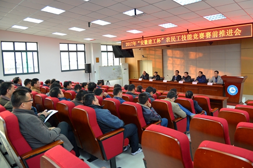 2017年“安徽建工杯”全省農(nóng)民工技能大賽決賽將于11月24、25日在我院舉行,學(xué)院領(lǐng)導(dǎo)高度重視,技能大賽的各項(xiàng)準(zhǔn)備工作正在緊鑼密鼓地展開(kāi)。為確保此次農(nóng)民工技能大賽取得圓滿(mǎn)成功,學(xué)院于11月20日下午在錄播室召開(kāi)了 “安徽建工杯”農(nóng)民工技能大賽賽前推進(jìn)會(huì)。學(xué)院領(lǐng)導(dǎo)班子及所有相關(guān)工作人員參加了會(huì)議。會(huì)議由副院長(zhǎng)周元清主持。
