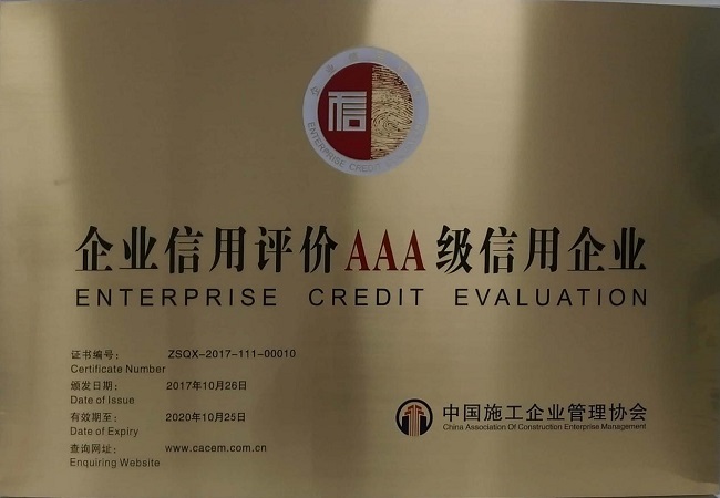 此次公司獲評(píng)中施企協(xié)企業(yè)信用評(píng)價(jià)AAA級(jí)信用企業(yè),是外界對(duì)我公司管理能力、效益水平、發(fā)展前景等綜合實(shí)力的認(rèn)可,為提高公司知名度和競(jìng)爭(zhēng)力增添了新的砝碼。