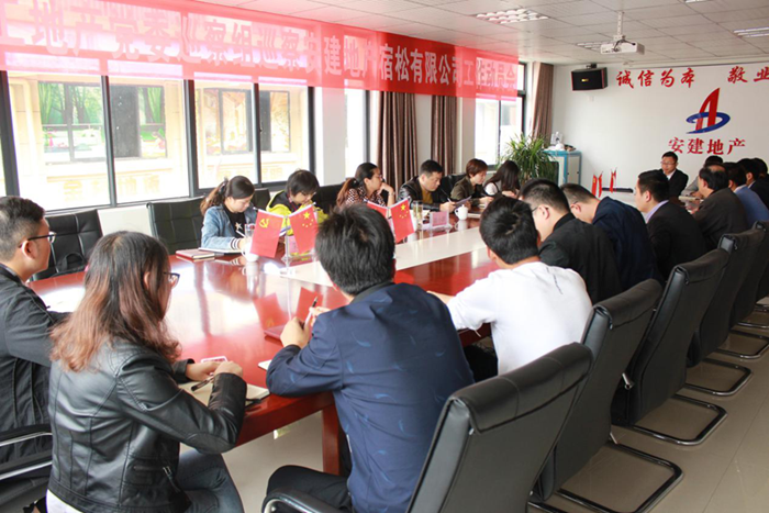 11月11日,安建地產(chǎn)淮北公司聯(lián)合淮北棚改各項(xiàng)目建筑單位黨員組織召開(kāi)十九大會(huì)議精神學(xué)習(xí)宣貫會(huì)。