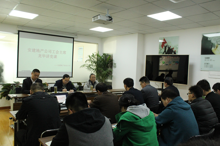 11月2日,安建地產(chǎn)工會(huì)主席龍華一行蒞臨沛縣公司,以《十九大對(duì)黨章做了這些重要修改》和《踐行新思想 創(chuàng)造新業(yè)績(jī)》為主題,給全體員工上了一堂生動(dòng)的黨課。