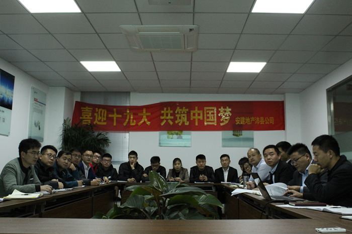 十九大召開(kāi)后,安建地產(chǎn)黨委把十九大精神的學(xué)習(xí)作為重點(diǎn)工作內(nèi)容,11月7日,安建地產(chǎn)召開(kāi)黨委中心組理論學(xué)習(xí)會(huì)議,重點(diǎn)學(xué)習(xí)了十九大報(bào)告精神和新《黨章》。各基層黨組織也先后召開(kāi)專(zhuān)題學(xué)習(xí)會(huì)議,學(xué)習(xí)貫徹十九大精神。