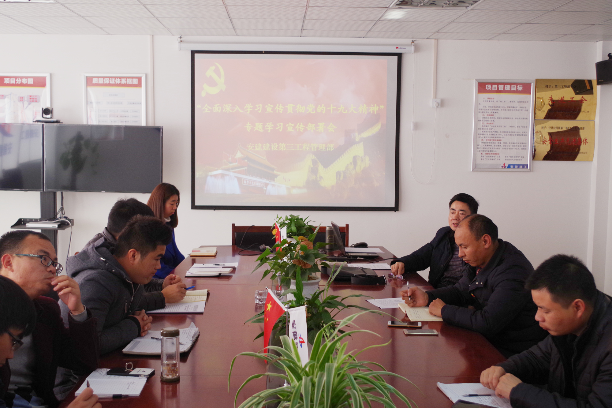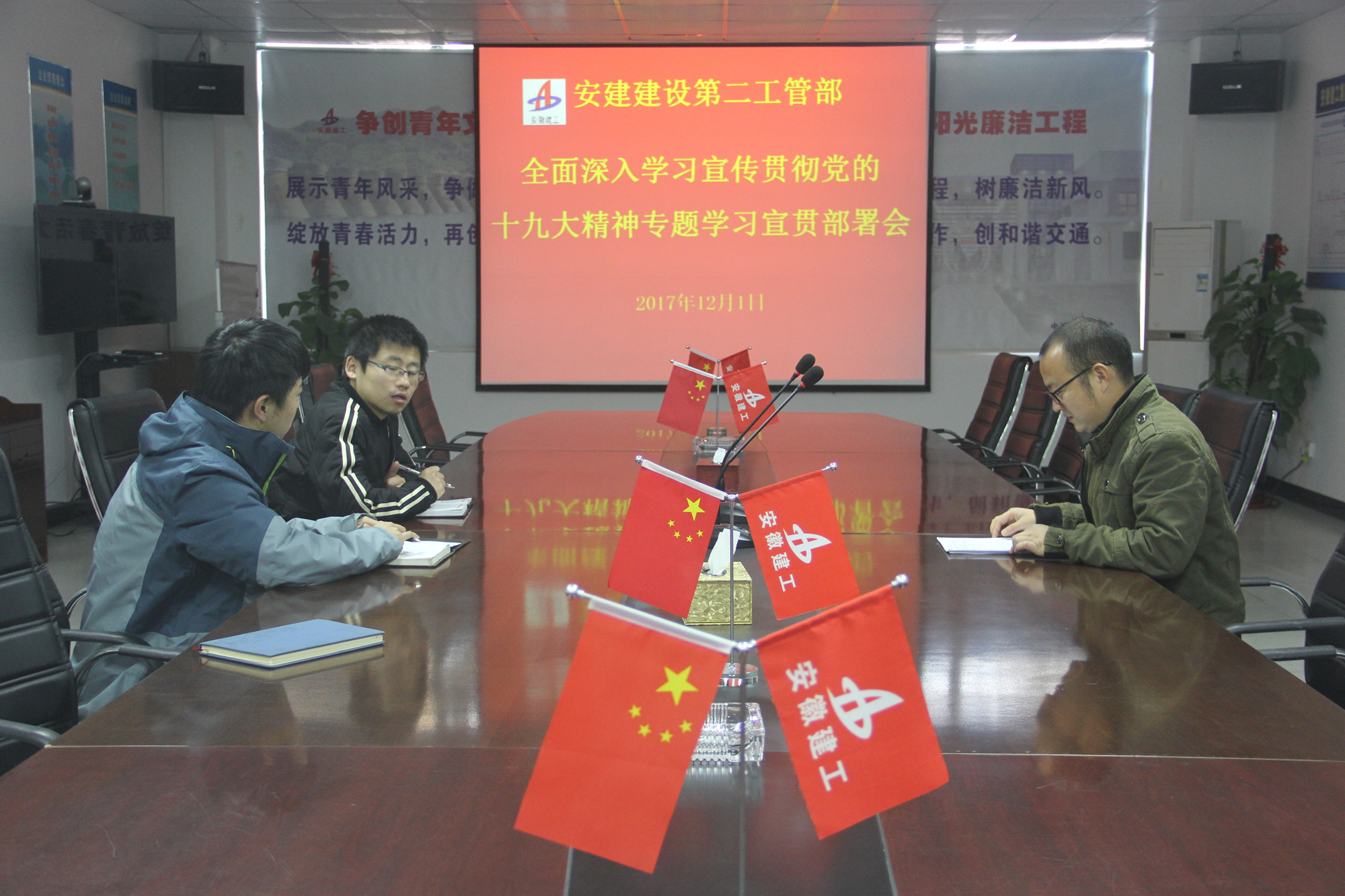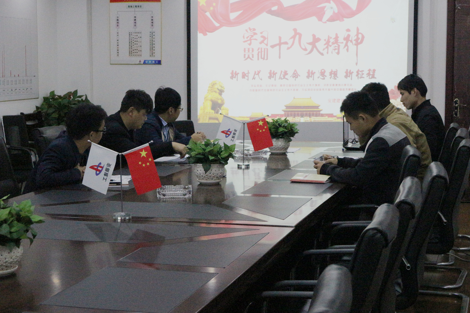 為全面深入學(xué)習(xí)宣傳貫徹黨的十九大精神,認真貫徹集團公司《關(guān)于全面深入學(xué)習(xí)宣傳貫徹黨的十九大精神的實施意見》文件精神,扎實抓好十九大精神“大學(xué)習(xí)”,12月8日下午,安建建設(shè)組織召開了黨委中心組專題學(xué)習(xí)研討會。會議由公司黨委書記王可武主持,公司領(lǐng)導(dǎo)班子成員參加會議。
