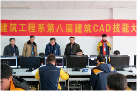 為進(jìn)一步普及建筑CAD繪圖技術(shù),提升學(xué)生建筑CAD技能應(yīng)用水平,促進(jìn)學(xué)院建筑CAD教學(xué)再上新臺(tái)階,同時(shí)也為市、省級(jí)和國(guó)家級(jí)中等職業(yè)學(xué)院建筑CAD技能大賽選拔人才做準(zhǔn)備。2017年12月8號(hào)下午,由建筑工程系舉辦的第八屆CAD技能大賽在計(jì)算機(jī)中心舉行。任建設(shè)副院長(zhǎng)、呂良玉副院長(zhǎng)、張齊欣院助、建筑工程系陸飛虎主任、楊繼強(qiáng)書記和實(shí)訓(xùn)中心陳陸龍副主任到比賽現(xiàn)場(chǎng)觀看了比賽。歐小佩、段淑婭和朱香茹等三位老師擔(dān)當(dāng)此次比賽的裁判。