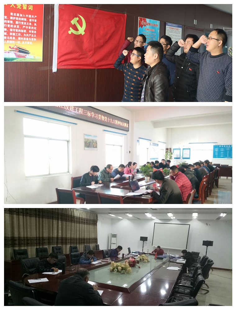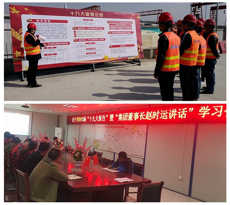 合寧預(yù)制標(biāo)項(xiàng)目黨支部于近日組織召開黨的十九大精神學(xué)習(xí)宣貫會(huì),黨支部書記劉欽結(jié)合十九大召開以來自身的學(xué)習(xí)體會(huì),向與會(huì)人員宣貫了會(huì)議精神,要求全體員工要將會(huì)議精神深刻領(lǐng)會(huì),并貫穿到項(xiàng)目管理及施工生產(chǎn)中。該項(xiàng)目黨支部專門制定了學(xué)習(xí)十九大精神的學(xué)習(xí)計(jì)劃,將《黨章》、《十九大報(bào)告單行本》、《十九大報(bào)告輔導(dǎo)讀本》等發(fā)放到黨員干部手中。在項(xiàng)目部駐地醒目位置專門設(shè)立了十九大精神宣傳展板,在宣傳欄張貼了十九大相關(guān)學(xué)習(xí)資料,多措并舉營造學(xué)習(xí)氛圍。